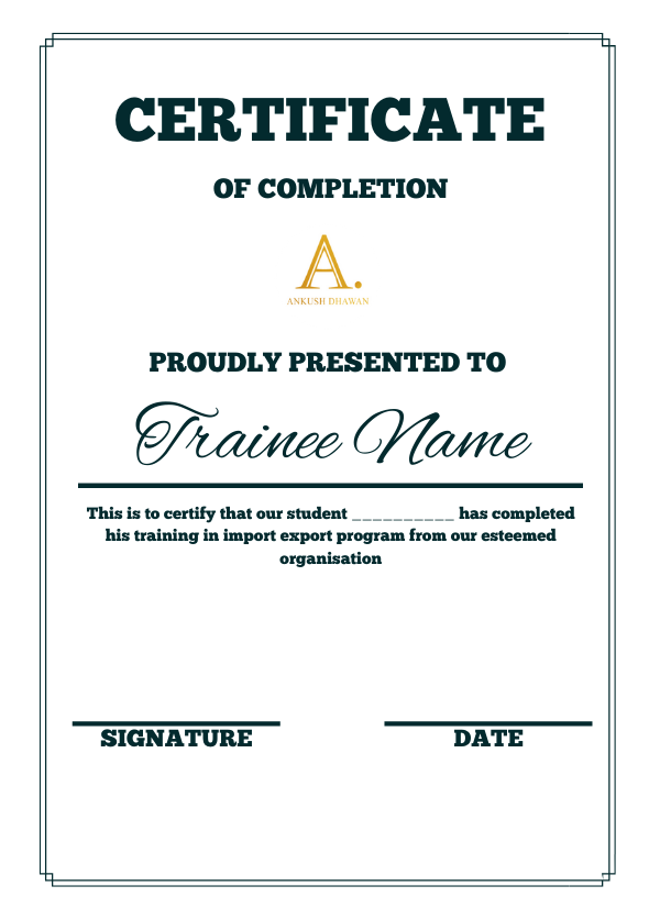 This is to certify that our student __________ has completed his training in import export program from our esteemed organisation